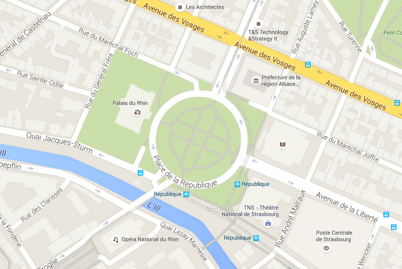 Situé à l'ouest de la Place de la République , le palais impérial, dénommé aujourd'hui Palais du Rhin, symbole de l'occupation Allemande après la défaite de 1870 et le rattachement de l'Alsace à l'Allemagne, fut conçu par l'architecte Herman Essert et construit entre 1884 et 1889. L'inauguration eut lieu le 23 Août 1889 en présence de l'empereur Guillaume II lui même.